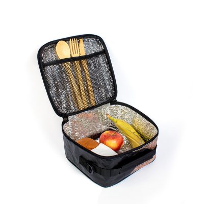 This sustainable lunch bag is perfect for taking your meals on-the-go wherever you need to. It will keep the temperature of both hot/cold meals and drinks for you to have them ready at any time. Take it along with you to school, the office, or on short trips and enjoy your favorite treats! As with all Up-fuse creations, this lunch bag is made out of sustainable and recycled materials to minimize your ecological footprint.