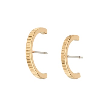 A playful silhouette made to complement your earring stack – the shape hugs your ear creating an eye-catching, cuff-like effect. The Meta Huggie Studs feature textured detailing. Handcrafted by our artisan partners in Kenya with 24k gold plated brass using traditional techniques.