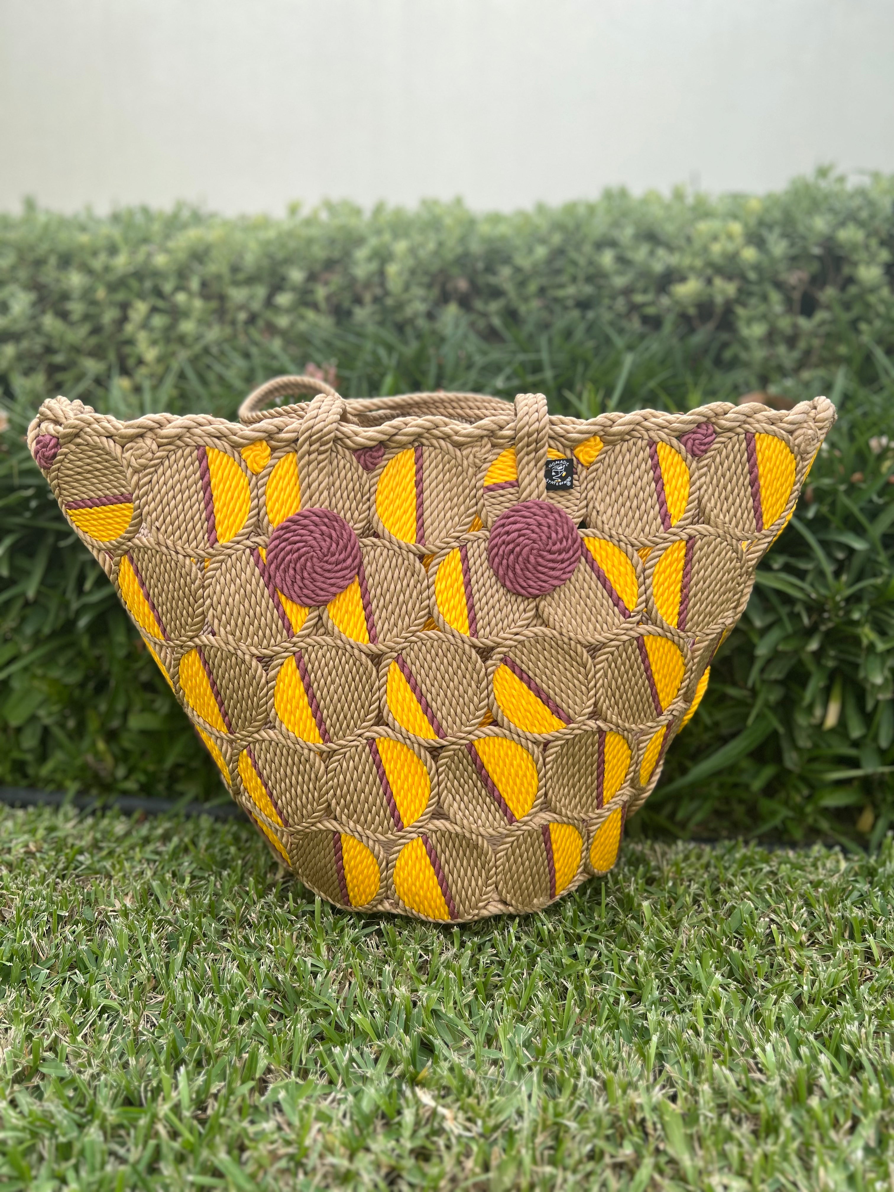 The Playa Circle Rope bag is made using all of our sandal scraps. Large enough to fit more then you should need for a day at the beach or pool. enjoy walking with a myriad of colors to draw your attention away from the current events.