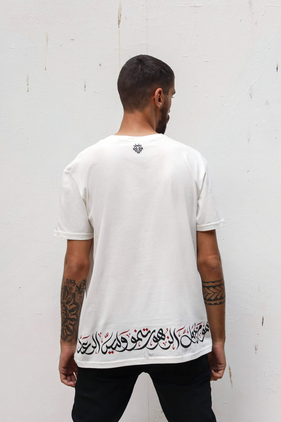 In celebration of the brand’s Arab heritage, we stay true to our roots and include our Sc-Arabic line in each collection. These designs are a tribute to the beautiful art of calligraphy, an often invisible art that is vital to continue to keep alive. These t-shirts take a different direction that showcases the Arabic footprint on philosophy, and on our ideas of social justice and inclusion, in a unique fresh and fashionable way. This quote by Sufi Poet Jalal ad-Din Muhammed Rumi states “Raise your words, not voice. It is rain that grows flowers, not thunder”. In advocating for social justice, equality & inclusion it can seem easy to ‘raise our voice’ in protest and demand that things be made right. However, anger and violence, although seemingly justified, are only the other side of the same coin of the oppressors. Battles must be fought with calm and powerful words while inspiring others to cultivate a growth solution-oriented mentality.